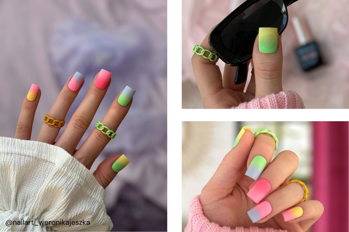 Bleiben Sie bei uns, um zu lernen, wie man Ombre-Nägel richtig macht und welche die trendigsten Lösungen sind. Probieren Sie eine neue Technik in Ihrem Salon oder bequem zu Hause aus und holen Sie sich mit uns frische Nagelinspirationen für den Sommer!