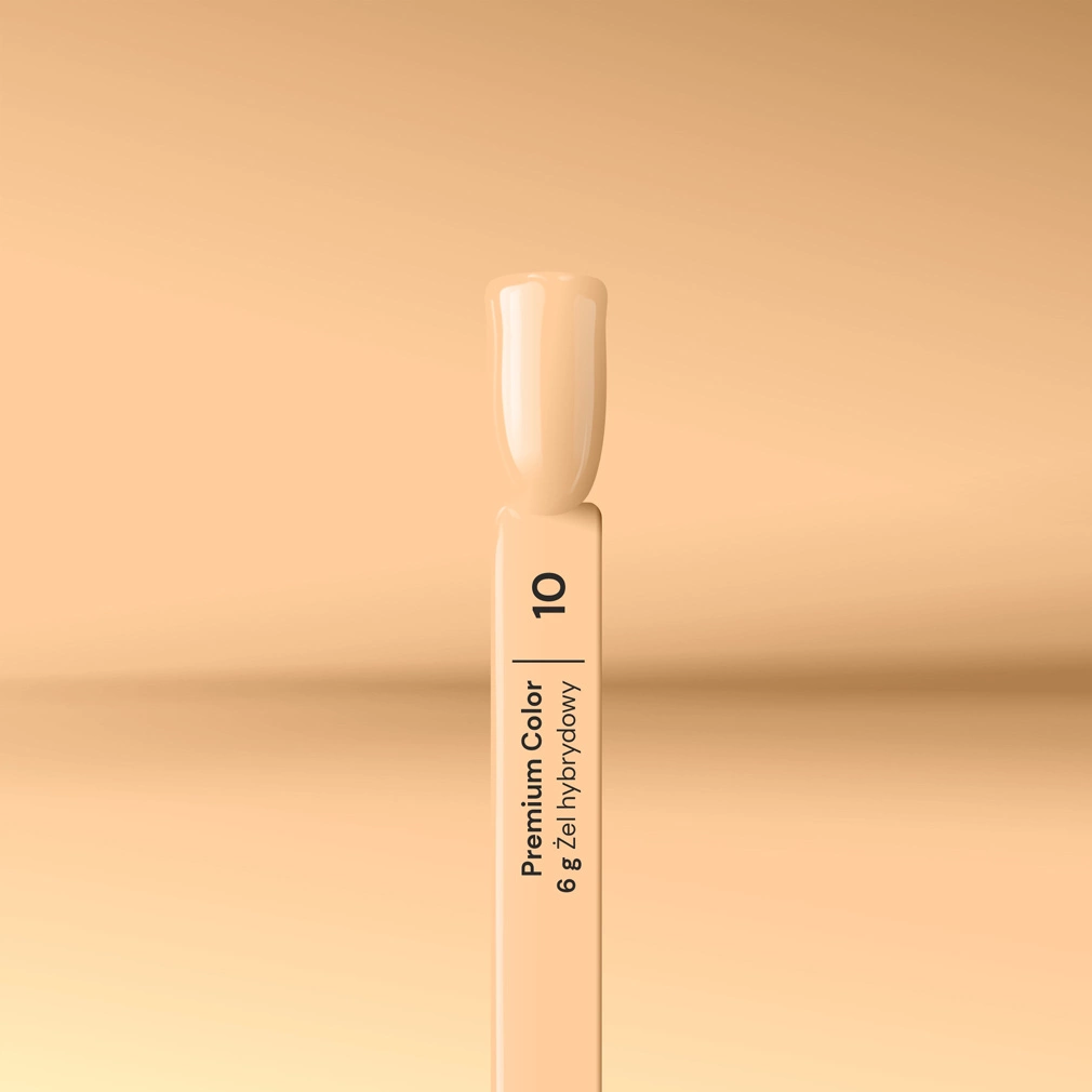 Modisch zu sein bedeutet nicht nur, kommenden Trends zu folgen, sondern sie vorauszusehen und etwas völlig Neues daraus zu schaffen. Eine trendige Hybrid-Maniküre mit Color Premium 10 ermöglicht dir genau das – die pfirsichfarbene Farbe passt perfekt zu senfgelb, blau und salbei.