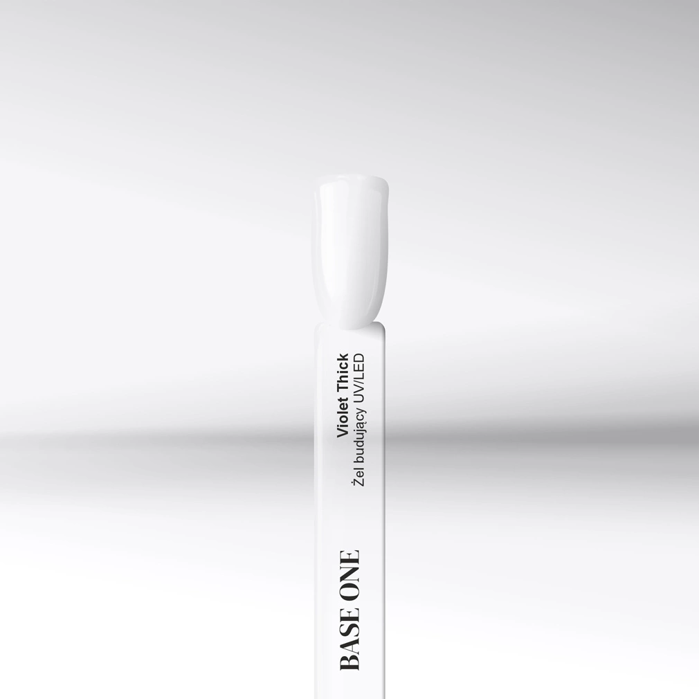 Base One Violet Thick zeichnet sich durch hervorragende selbstnivellierende Eigenschaften, eine Haltbarkeit von bis zu 4 Wochen und eine transparente, zarte violette Farbe aus, die perfekt für natürliche Stylings ist.
