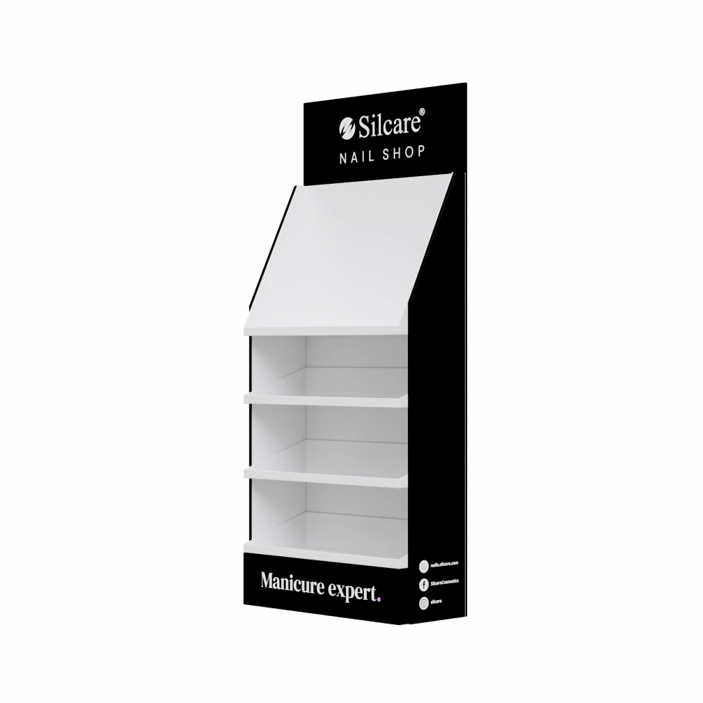 Vergessen Sie Lacke, die Ihren Arbeitsplatz einnehmen, Vitrinen und Regale, die Staub sammeln. Der einseitige Aussteller ist die perfekte Lösung für professionelle Nageldesignerinnen. Sein elegantes Design passt in jeden Salon. Dieser Ständer ist eine praktische Möglichkeit, wichtige Produkte zu präsentieren, die die Aufmerksamkeit der Kundinnen auf sich ziehen.