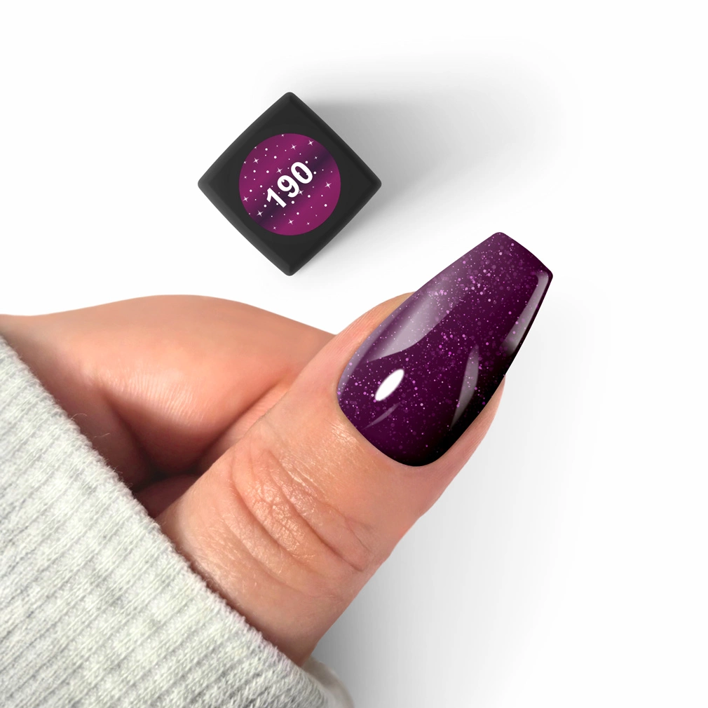 Wenn du Stylings mit Wow-Effekt liebst, ist dieser Nagellack genau das Richtige für dich. Der Hybridnagellack Flexy 190 Cosmic Burgundy kombiniert tiefes Violett mit schimmernden Partikeln, die wie galaktischer Glanz wirken. Perfekt für Abendveranstaltungen, Karneval oder Looks, die genauso strahlen sollen wie du.