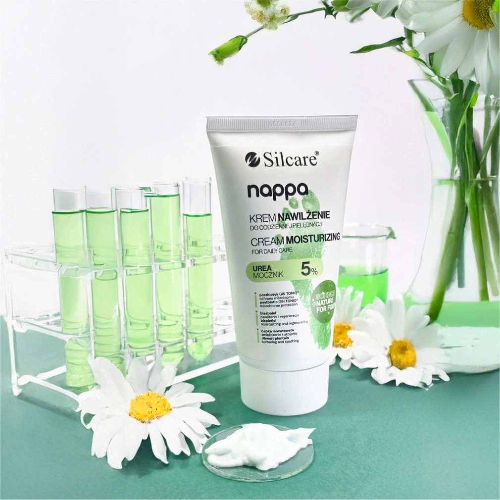 NAPPA MOISTURIZING Creme für die tägliche Pflege mit 5 % Urea ist eine Creme, die die Haut der Füße jeden Tag optimal mit Feuchtigkeit versorgt. Die Creme spendet intensive Feuchtigkeit und schützt die Haut vor Rissen und Hornhaut, insbesondere an den Fersen. Dank ihrer Formel zieht die Creme schnell ein und hinterlässt keinen Fettfilm.