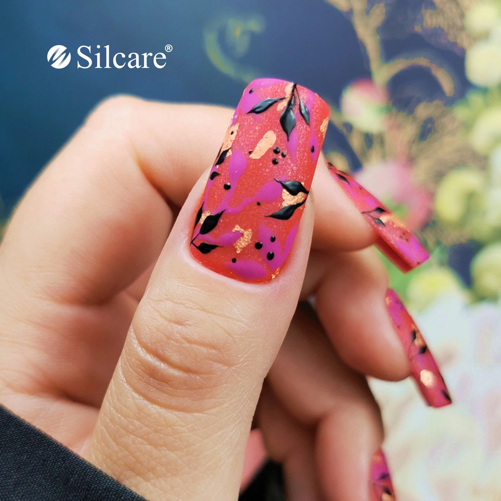 Neon Hybridnägel mit Blatteffekt sind die perfekte Wahl für Liebhaberinnen mutiger und origineller Designs. Intensives Pink mit goldenen Akzenten und schwarzen Blättern machen die Maniküre zu einem echten Hingucker und verleihen jeder Stylisierung Energie. Die ideale Option für den Sommer, den Urlaub oder Sommerpartys, wenn du dich abheben und deine Kreativität unterstreichen möchtest. Neontöne in Kombination mit dezentem Glanz passen perfekt zu den neuesten Hybridnagel-Trends für 2025. Setze auf außergewöhnliche Verzierungen und erwecke deine Hände mit diesem Look zum Leben!
