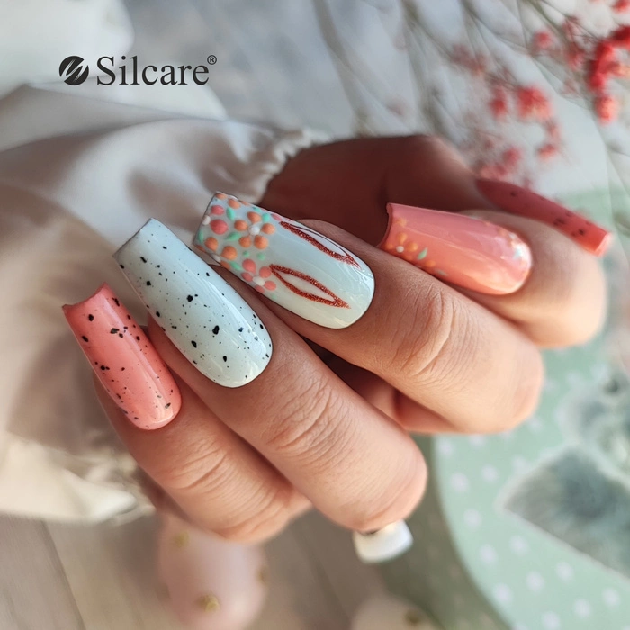 Verleihe deinen Nägeln österlichen Charme mit Pastellfarben und niedlichen Verzierungen. Dieses Design ist die perfekte Wahl für eine festliche Maniküre, die angesagte, sanfte Farbtöne mit einzigartigen Mustern wie Hasenohren oder einem Punkt-Effekt, der an Ostereier erinnert, kombiniert. Die Mischung aus pastellrosa, blau und pfirsichfarbenen Akzenten sorgt für einen stilvollen Look während der Feiertage.