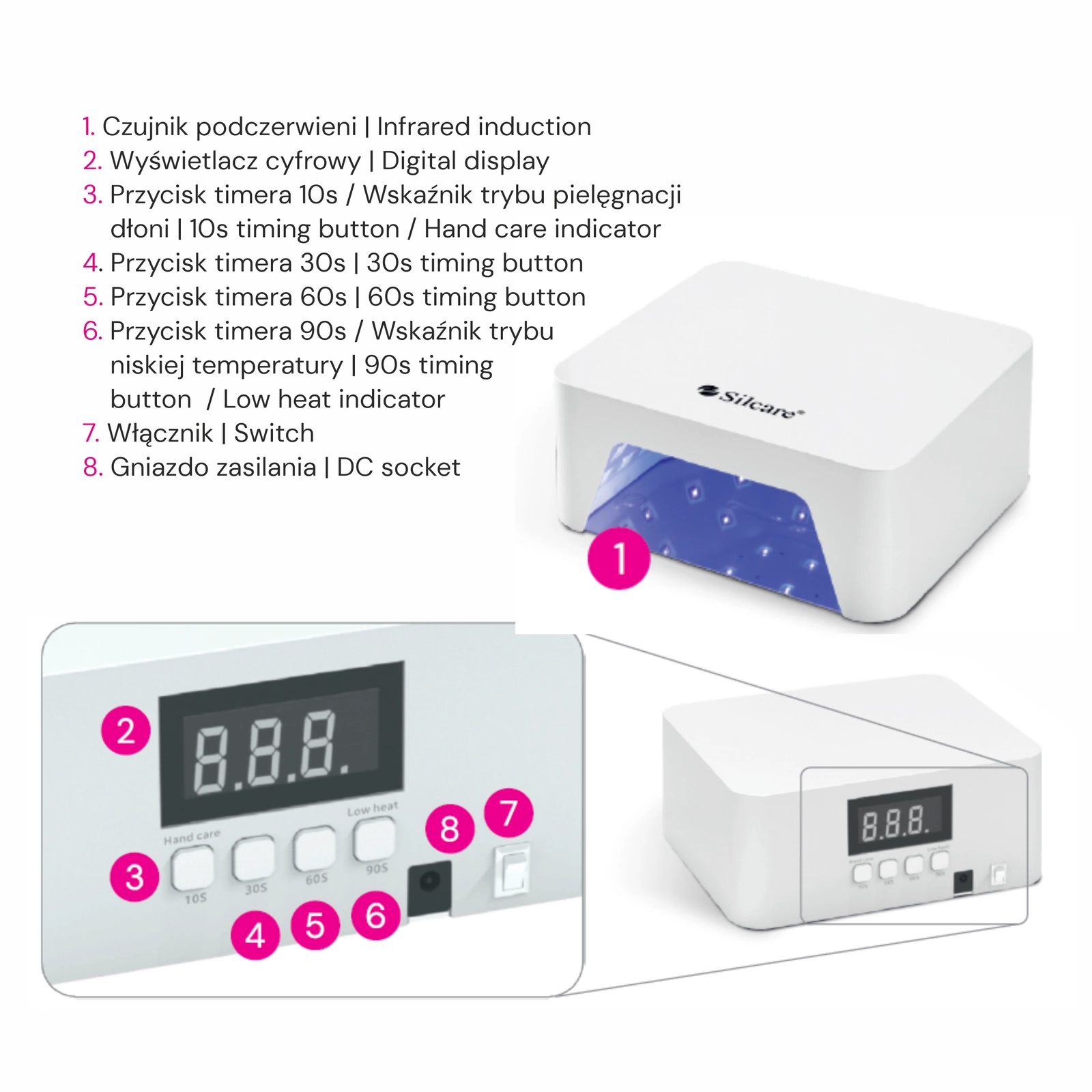 Die Silcare UV LED Lampe bietet nicht nur Effizienz, sondern auch hohen Arbeitskomfort. Sie ermöglicht ein schnelles und einfaches Erzielen einer perfekten Maniküre – egal ob mit Hybridlacken oder UV/LED-Gelen. Sie ist eine professionelle Lösung, die die Qualität der Dienstleistungen verbessert und die Haltbarkeit und Ästhetik der Nagelstylings garantiert.