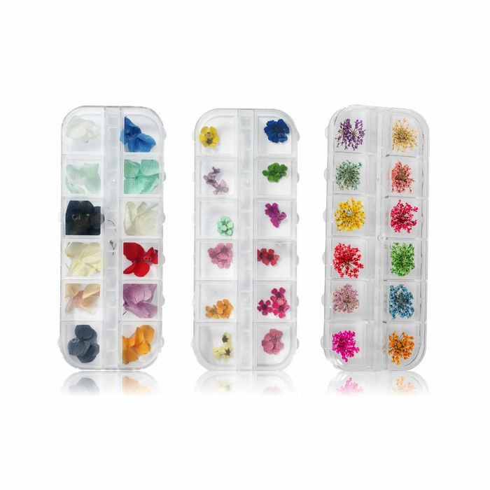 Unsere getrockneten Blüten sind ein wahres Highlight für Liebhaberinnen von natürlicher, eleganter Maniküre, da sie leicht anzuwenden sind und sich perfekt sowohl mit natürlichen als auch künstlichen Nägeln kombinieren lassen. Mit ihnen werden deine Hände einen besonderen Charme ausstrahlen, und du wirst dich wie eine echte Künstlerin fühlen, wenn du kleine Kunstwerke auf deinen Nägeln kreierst.
