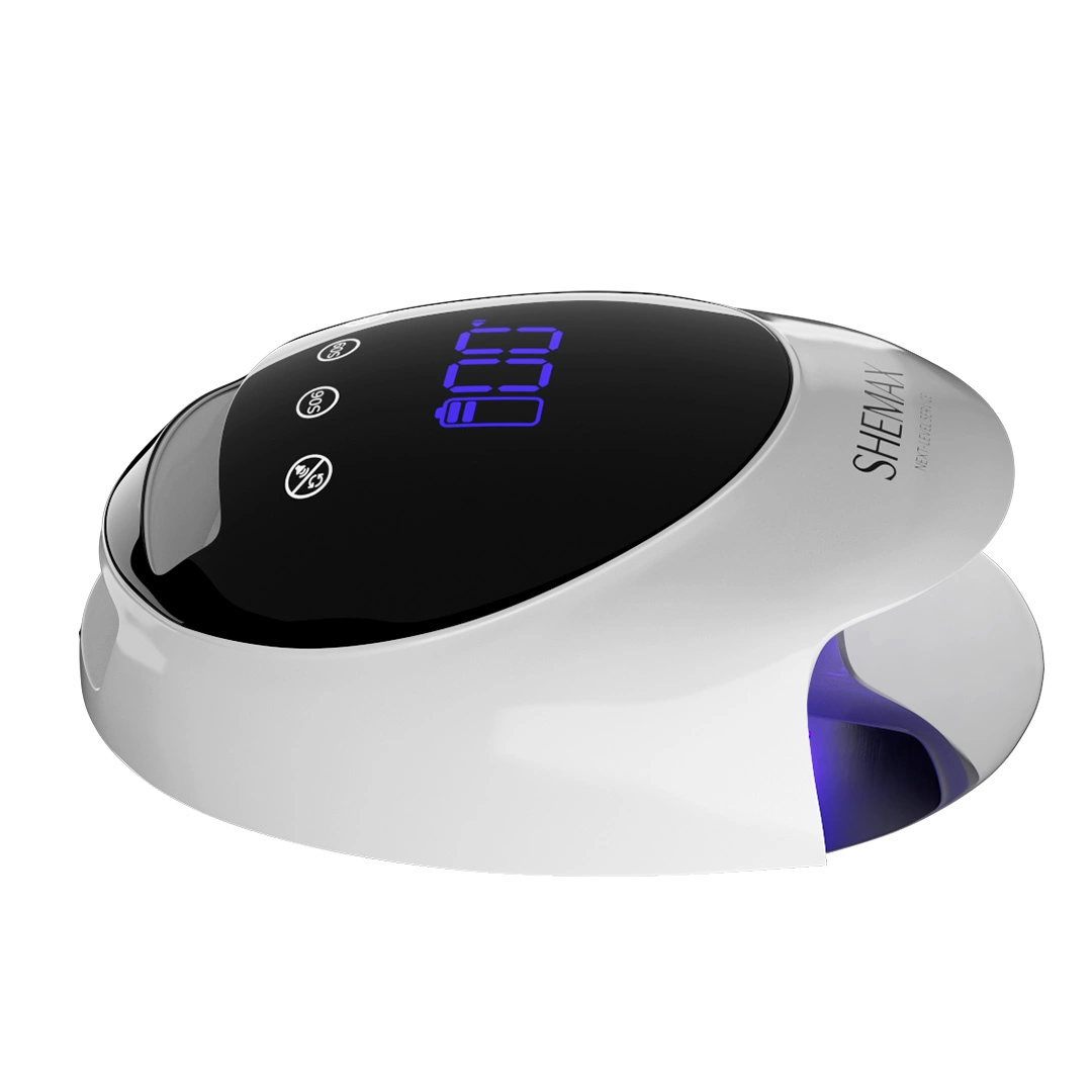 Die SHEMAX PRO Nagellampe bietet eine unvergleichliche Polymerisationsleistung von 72 Watt und verwendet spezielle Kaltlicht-LEDs. Zusätzlich sorgt das intelligente Überhitzungsschutzsystem 2.0 für eine sichere und langlebige Nutzung der Lampe. Dank des wiederaufladbaren Akkus und des kabellosen Betriebs ist das Gerät äußerst mobil und ermöglicht mit einer einzigen Ladung bis zu 3 Stunden ununterbrochene Nutzung.