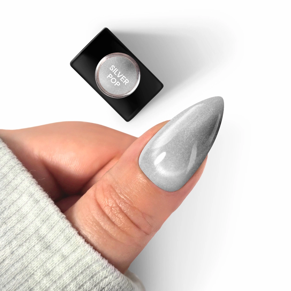 Mit Silver Pop erhalten deine Cat’s-Eye-Nägel einen subtilen, aber ausdrucksstarken Charakter. Eine Farbe, die nie langweilig wird – universell und gleichzeitig beeindruckend. Perfekt für Geschäftstreffen, Feierlichkeiten oder Abendveranstaltungen, bei denen Eleganz und zeitloser Stil zählen.