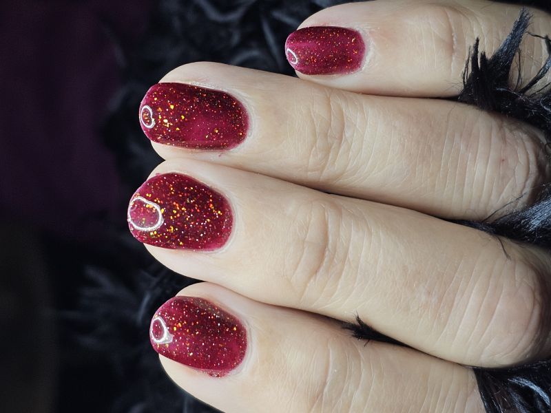 ManiMORE Midnight ASTRAL RUBY Flash ist eine neue Version von tiefem Rot mit feinem roten, grünen und goldenen Glitzer.