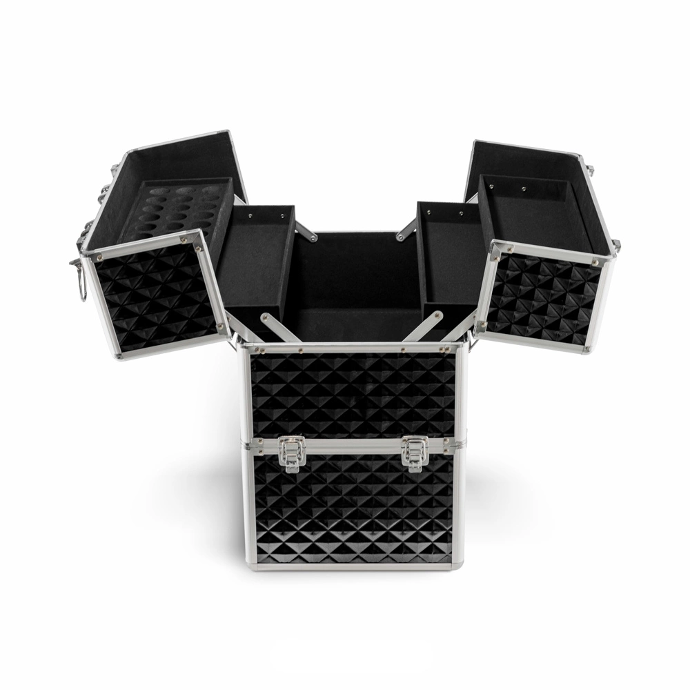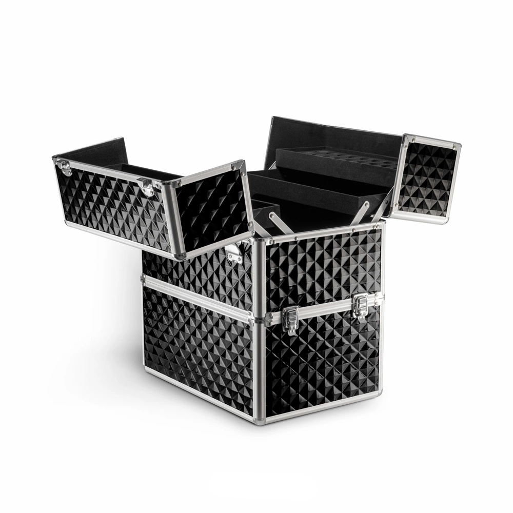 In den exklusiven Farben Schwarz und Silber gehalten, strahlt der Kosmetikkoffer auf den ersten Blick professionelles Wissen aus. Seine solide Konstruktion garantiert ein stilvolles Aussehen und Langlebigkeit und erfüllt alle Erwartungen selbst der anspruchsvollsten Profis.