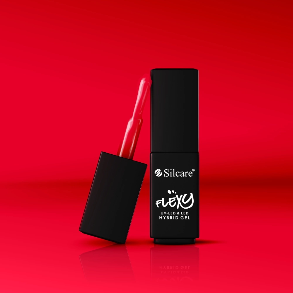 Shake the bottle well before use. Apply a base coat on the nail plate and cure as recommended. Apply 1–2 thin layers of Flexy hybrid polish, curing each for 60 seconds in a UV-LED lamp. Do not wipe with cleaner. Finish by applying your preferred top coat.