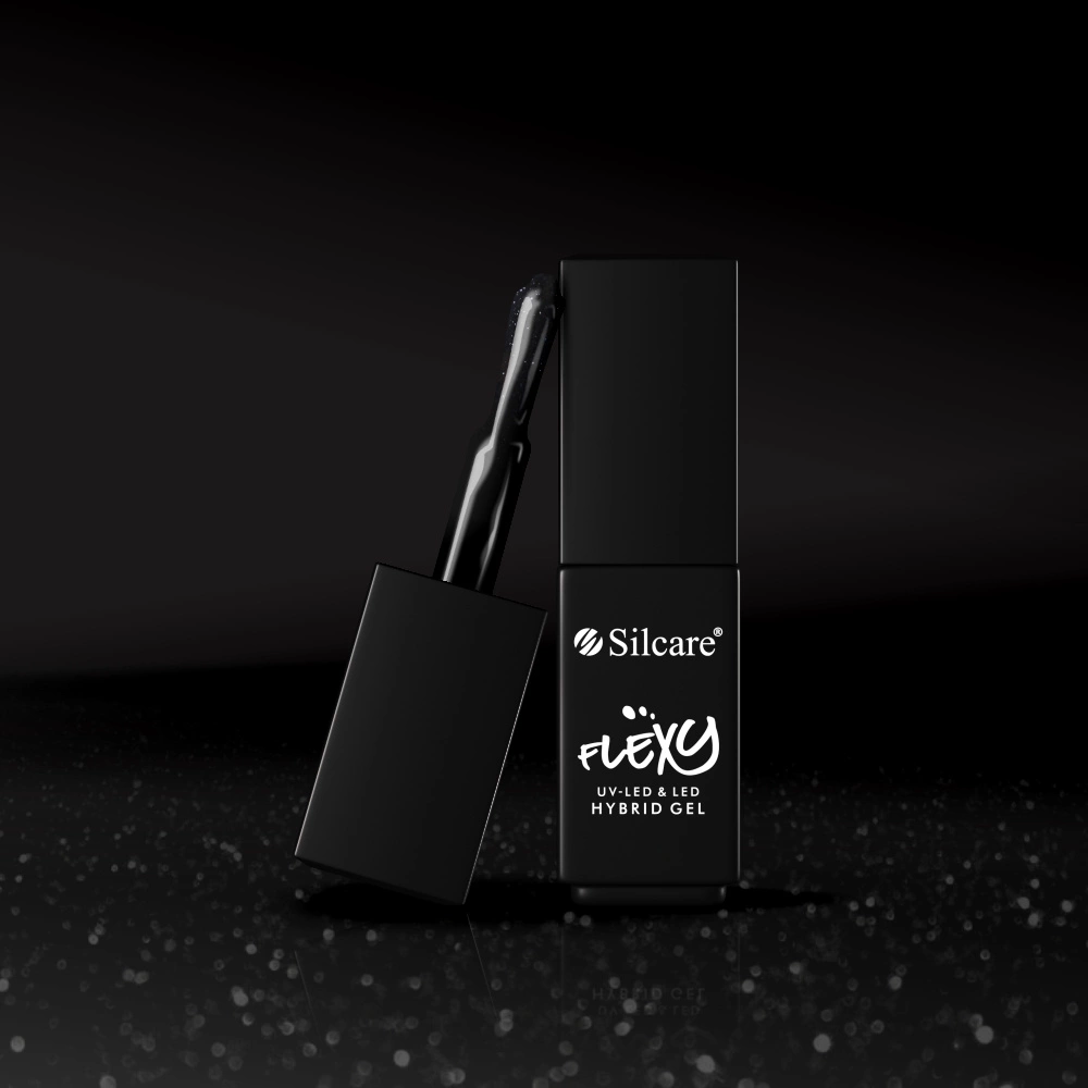 This hybrid nail polish is a perfect choice for bold and elegant styles that attract attention. Flexy 59 Cosmic Dust hybrid nail polish will take you to outer space! The dark, deep color resembles the night sky, shimmering with silver particles. Cosmic Dust is a hybrid nail polish that gives nails a unique glow and definition.