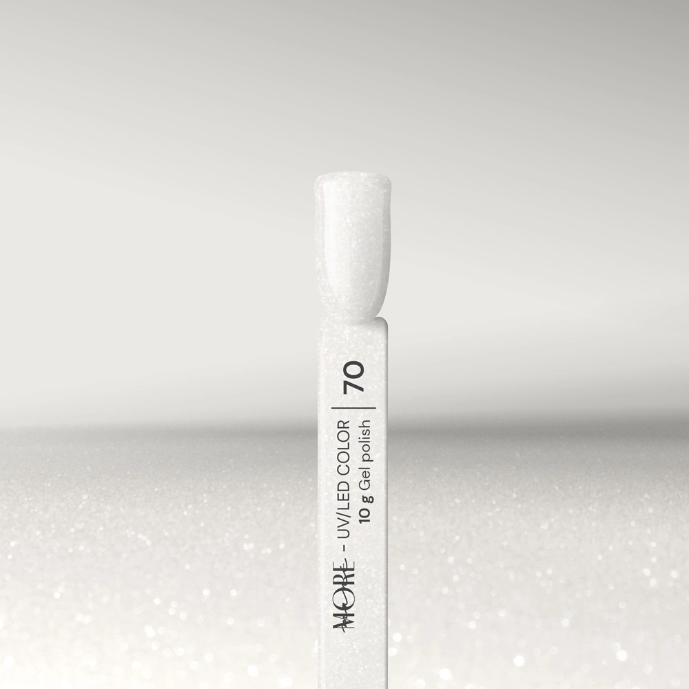 Pure elegance in a bottle. The maniMORE 70 Ice Slope hybrid nail polish is a delicately sparkling white. It brings to mind winter mornings when the first rays of sunlight reflect off the snow. Subtle yet captivating - it gives your hands freshness, class, and lightness. A timeless shade that never goes out of style.