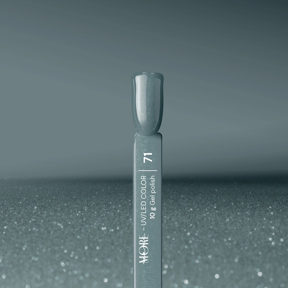 Shake the bottle several times before use. Apply the base coat on the nail plate and cure according to the manufacturer's recommendations. Then apply 1–2 thin layers of maniMORE hybrid nail polish and cure in a UV-LED lamp with a minimum power of 48 W for 60 seconds. Finish the look with an appropriate top coat.