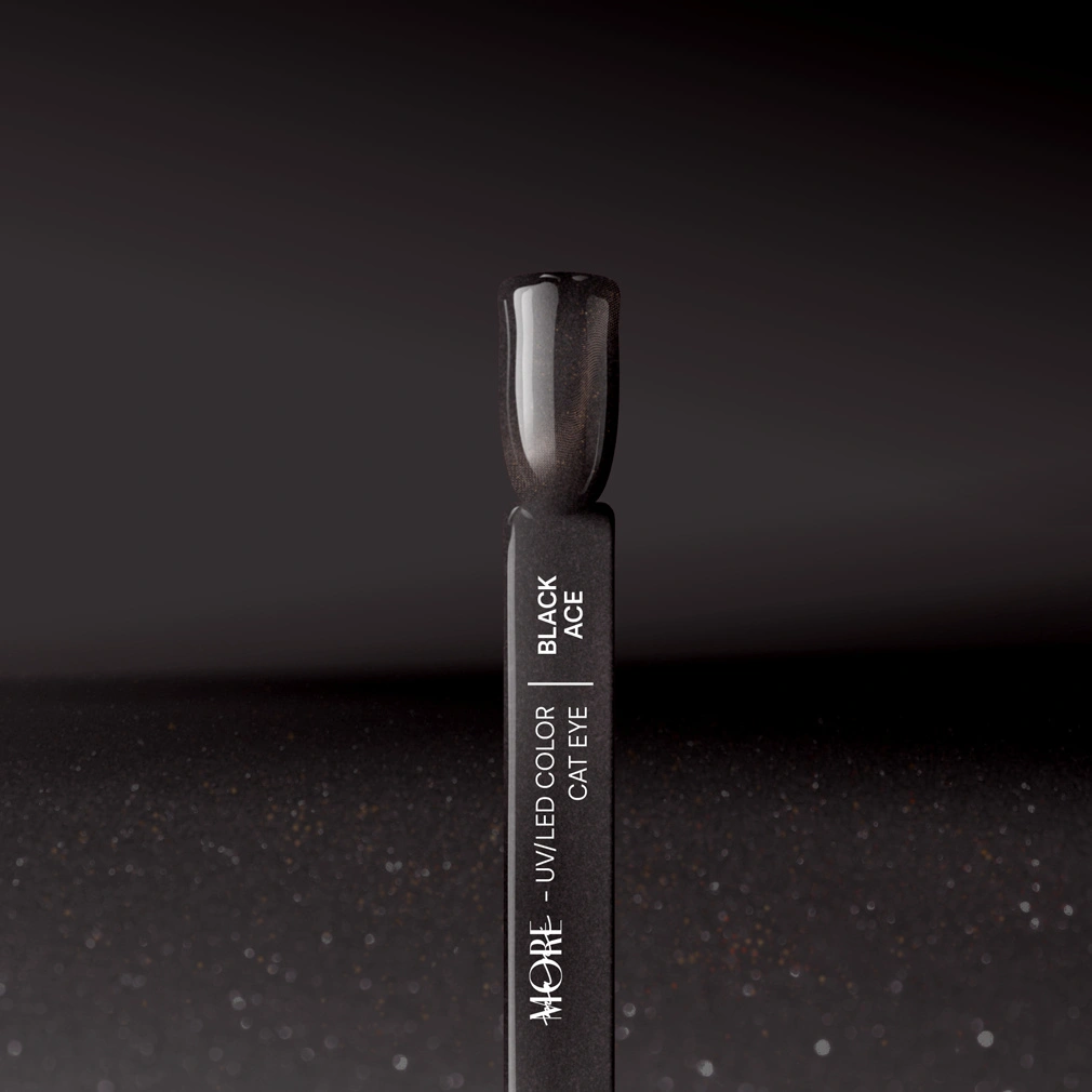 Valentine's Day in a noir mood! Black Ace is a gel polish for women who love mystery, magnetism and a touch of danger. Deep black combined with golden particles creates a cat eye effect that looks like a glance full of promises. On Valentine's Day - or any other day - it's a colour that speaks for you: confident, sensual, uncompromising.