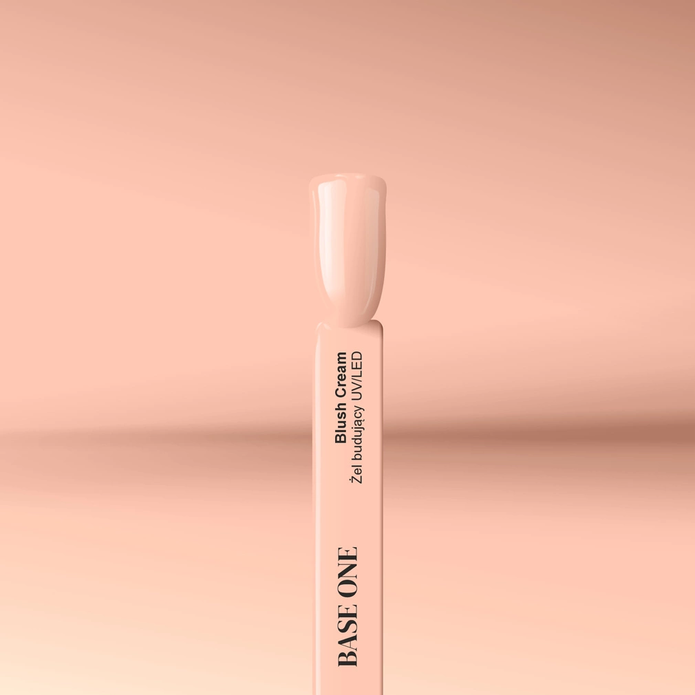 Base One Blush Cream is an excellent UV gel with full coverage in a charming apricot shade. It effectively conceals imperfections in the nail plate and visually elongates the nails. It ensures a naturally feminine look for nails and hands, and its medium-thick consistency provides exceptional ease and enjoyment in application for both seasoned professionals and beginner nail stylists alike.