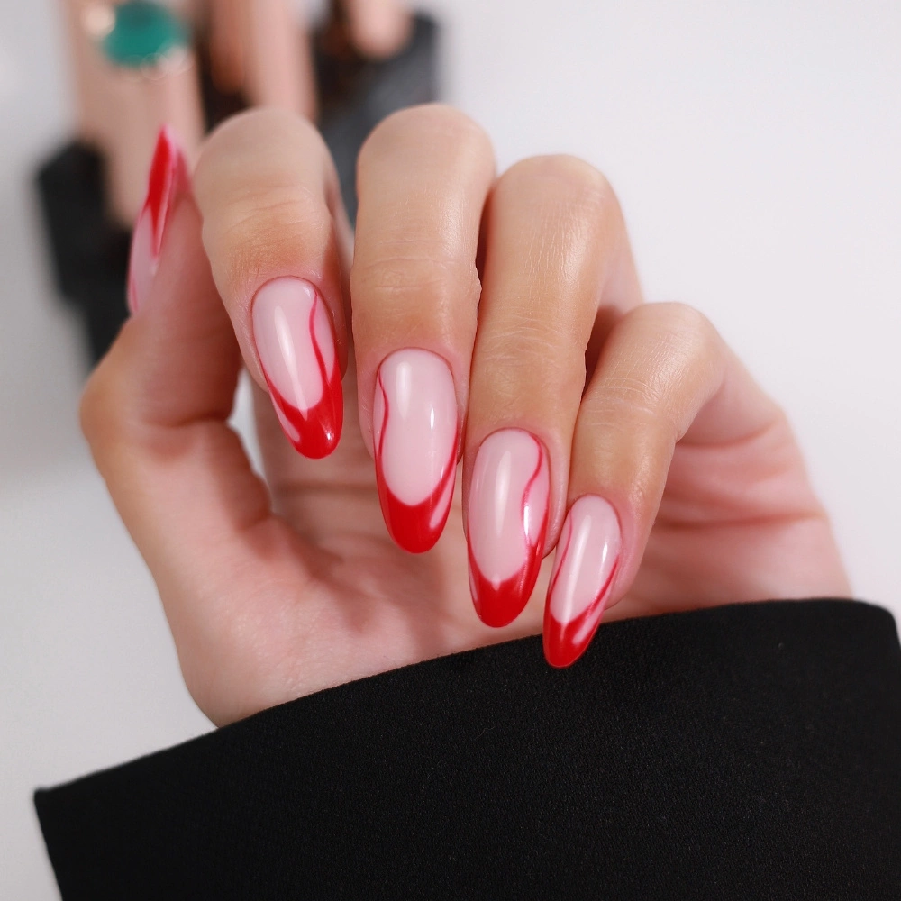 In this design, the red French has been additionally enhanced with wavy swirl lines, giving the manicure a fresh, slightly artistic, and highly fashionable look. It’s an ideal choice both for everyday wear and for special occasions - from evening outings to festive looks.
