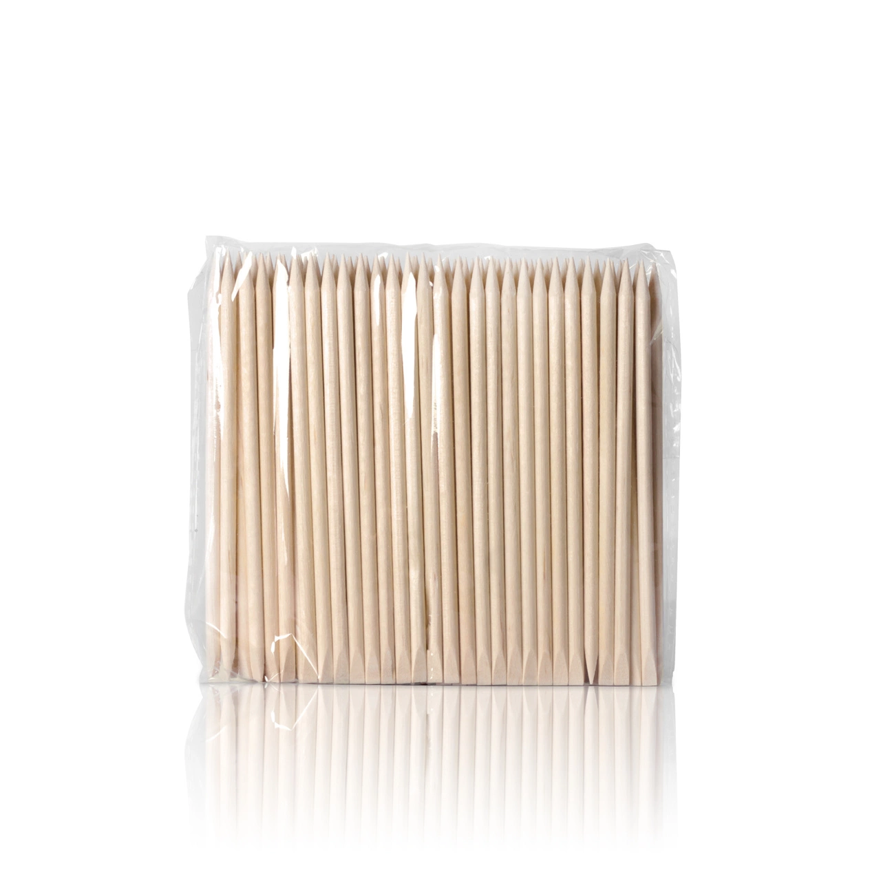 Wood stick to manicure, durable, do not delaminate. They have a spatula end on the one side and the conical end on the other side of stick. They allow for easy moving of cuticles, cleaning cuticles from the nail plate, cleaning surface under nail and the nail shaft. Use also to decorations.