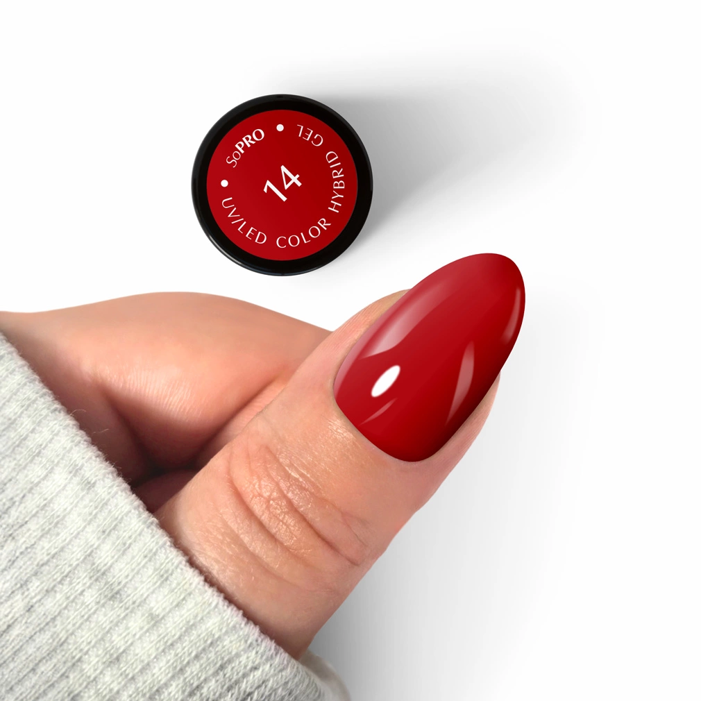 SoPRO UV / LED Color Hybrid Gel è una vernice ibrida professionale con composizione e proprietà innovative. La rivoluzionaria formula ipoallergenica senza HEMA consente una manicure sicura anche per le persone sensibili a questo ingrediente. Il prodotto fornisce un'eccellente copertura con soli 1-2 strati. La vernice è dotata di un pennello semicircolare, che permette una copertura precisa dell'intera lastra e del prodotto che raggiunge le cuticole.