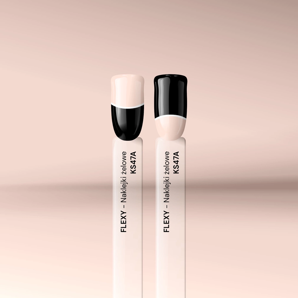 Gli adesivi per unghie in gel UV FLEXY sono realizzati in vero gel UV e parzialmente induriti. Grazie agli adesivi, puoi creare facilmente una manicure in gel unica e durevole in un batter d'occhio. Dopo un breve tempo di polimerizzazione in una lampada UV/LED, l'adesivo si trasforma in un rivestimento colorato brillante e duraturo sull'unghia. Il moderno sistema a triplo strato lo rende un prodotto completo: base, colore e parte superiore in uno. La confezione contiene 24 adesivi in gel di varie dimensioni che puoi facilmente applicare alla tua lamina ungueale naturale. Gli adesivi rimangono sulle unghie per circa 14 giorni. Un prodotto ideale per i principianti che vogliono realizzare da soli una manicure ibrida, così come per coloro che amano soluzioni semplici e che fanno risparmiare tempo.