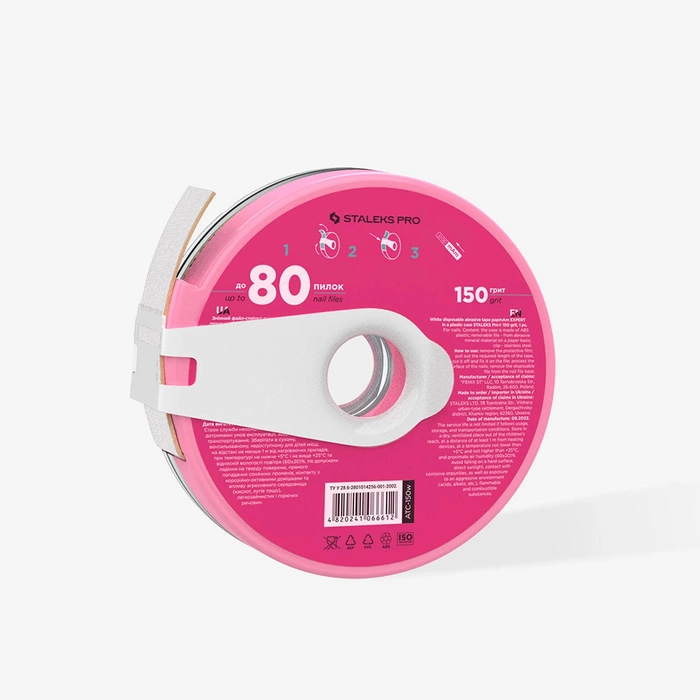 Il nastro abrasivo è costituito da inserti monouso intercambiabili sotto forma di rotolo in una scatola di plastica. Grazie al design innovativo, si applica sulla base della lima come una copertura, garantendo un lavoro igienico e comodo. Puoi usarlo durante la manicure e la pedicure - a casa e in salone.