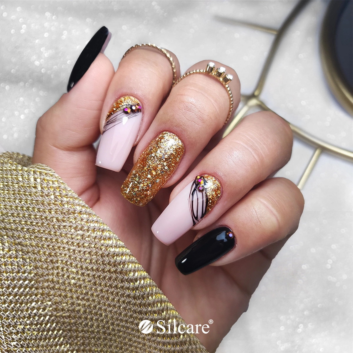 Oro e nero - decorazioni di lusso sulle unghie ibride