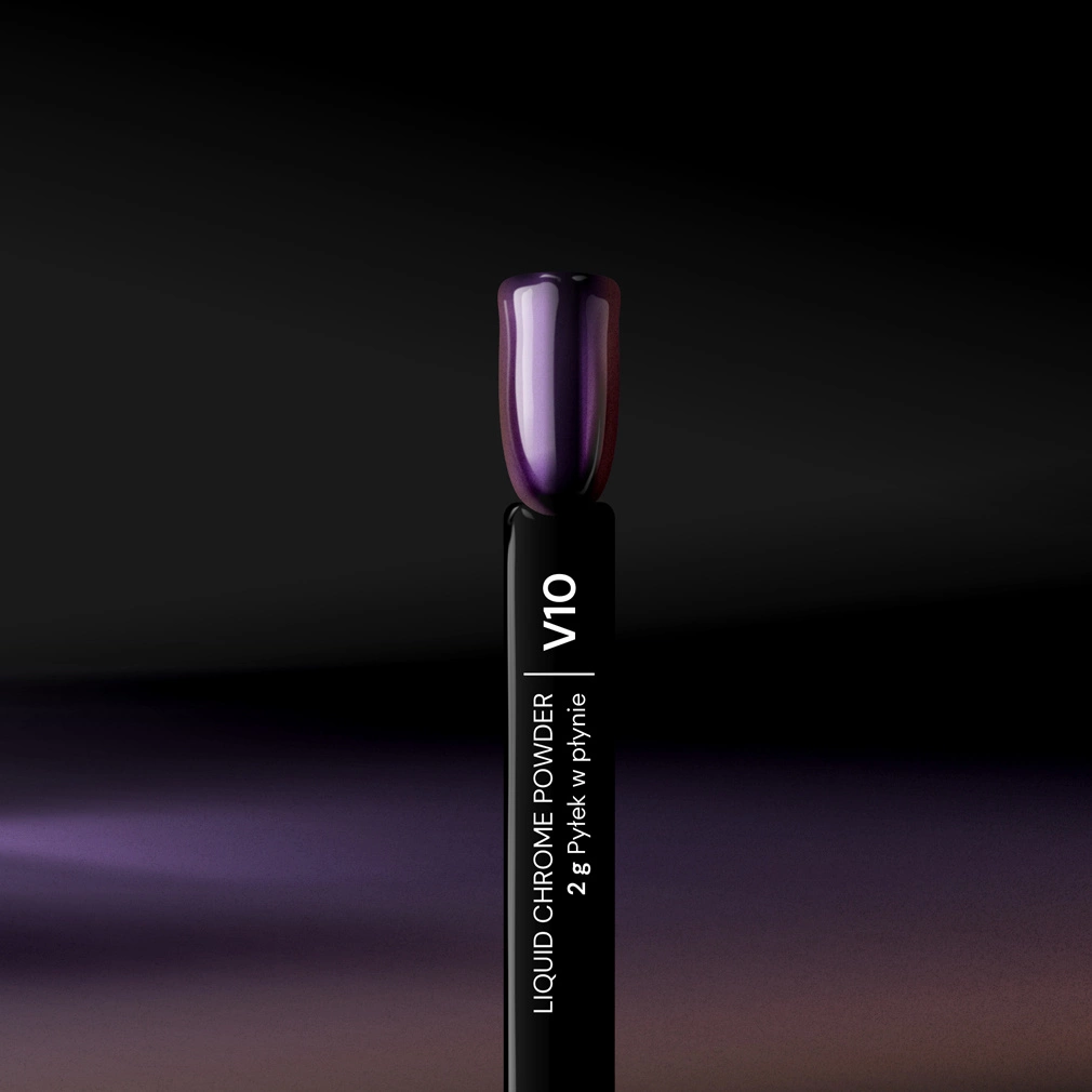 La polvere liquida Colore 10 crea un effetto specchio che cambia a seconda dell’angolazione e della luce. Le tue unghie brilleranno in sfumature di rosa, viola e oro, creando un affascinante effetto camaleonte.