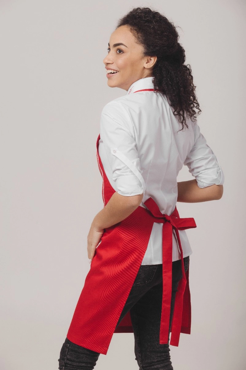 Il designer dell'azienda ha creato un progetto molto bello. La gamma comprende tre modelli in stili diversi: il grembiule rosso "sport", il grembiule nero "style" e il grembiule rosso "Pretty".