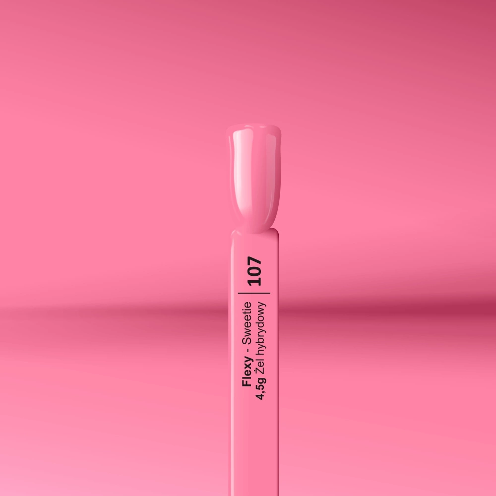 - Lo smalto ibrido Flexy 107 è un rosa confetto che ricorda lo zucchero filato o un tramonto estivo,