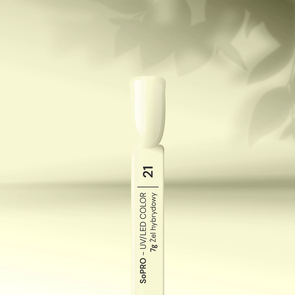 SoPRO UV/LED Color Hybrid Gel to profesjonalny lakier hybrydowy o innowacyjnym składzie i właściwościach. Rewolucyjna hipoalergiczna formuła bez HEMA pozwala na bezpieczne wykonanie manicure nawet osobom wrażliwym na ten składnik. Produkt zapewnia doskonałe krycie już przy 1-2 warstwach. Lakier został wyposażony w półokrągły pędzelek, który pozwala na precyzyjne pokrycie całej płytki i dotarcie produktem aż pod same skórki.