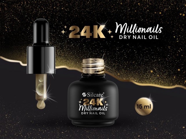 Owszem! Teraz możesz wykonać zabieg olejowania paznokci nie tylko przy użyciu produktu bogatego w naturalne oleje, ale z dodatkiem 24-karatowego złota. 24K Millionnails Dry Nail Oil od marki Silcare to suchy olejek do skórek i paznokci z kompleksem 4 drogocennych naturalnych olejów (z pestek winogron, pestek brzoskwini, sojowego i arganowego) i witaminą E, dzięki którym skóra wokół paznokci nabiera miękkości i gładkości, a ponadto odzyskuje prawidłowy poziom nawilżenia. Produkt regeneruje nawet osłabioną płytkę i przywraca paznokciom zdrowy połysk, wspomagając równocześnie ich wzrost. Dodatek prawdziwego 24-karatowego złota w 24K Millionnails Dry Nail Oil rozświetla skórę dłoni i pomaga utrzymać je w dobrej kondycji, dbając przy tym o ich młody wygląd. Pierwiastek wnika w głąb struktury paznokcia, wzmacniając i regenerując płytkę od środka. Olejek wchłania się szybko i nie pozostawia tłustej warstwy.