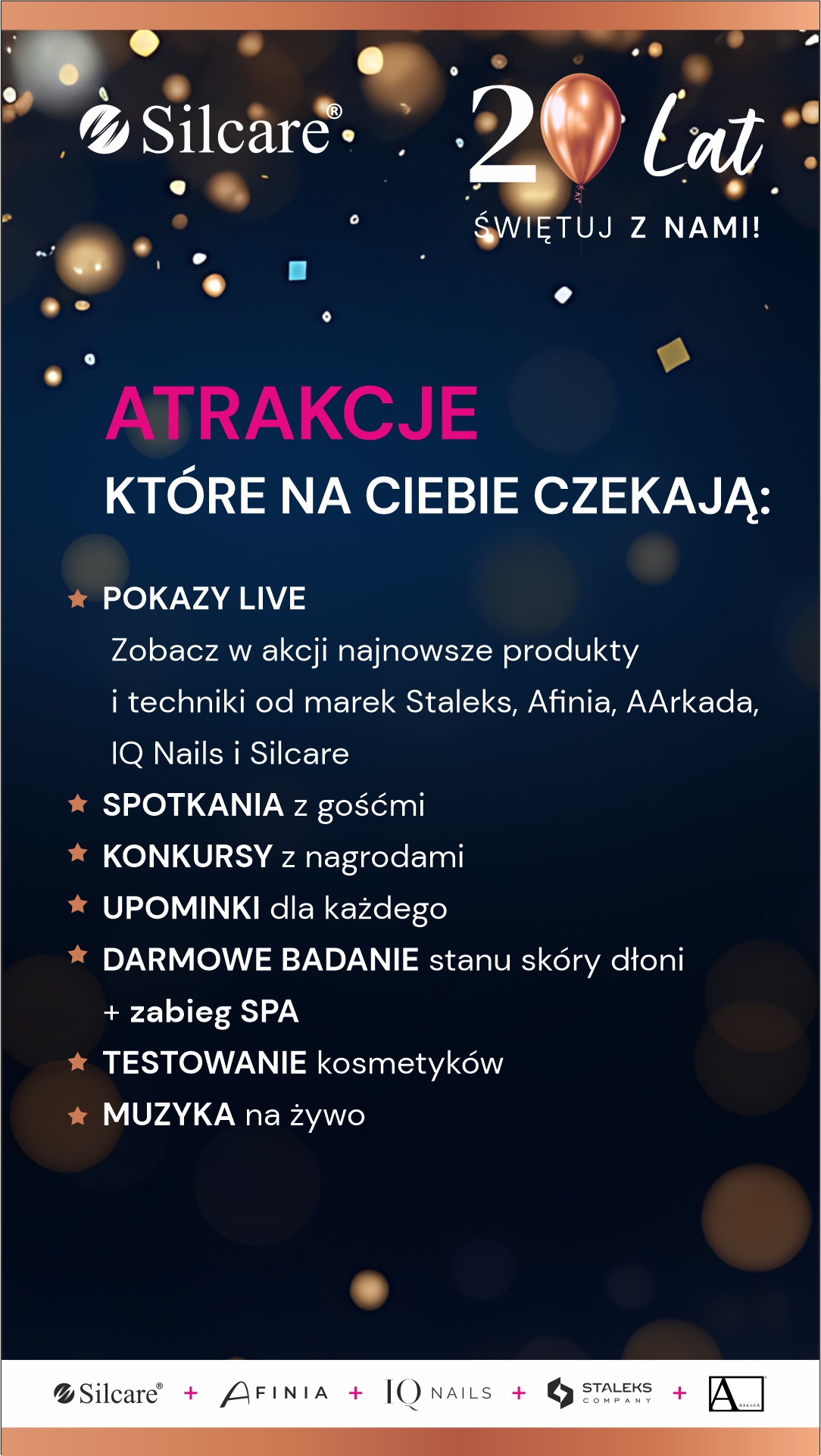 Wyjątkowe wydarzenie, na którym każda miłośniczka świata beauty, a przede wszystkim stylizacji paznokci, znajdzie coś dla siebie! Szereg wartościowych szkoleń, mnóstwo świetnych atrakcji, wielu wspaniałych gości, garść nagród, upominków i rabatów! Odkryj nowości i inspiracje od czterech profesjonalnych marek: Silcare, Staleks, IQ Nails, Afinia. Czytaj dalej, aby dowiedzieć się, co jeszcze dla Ciebie szykujemy!