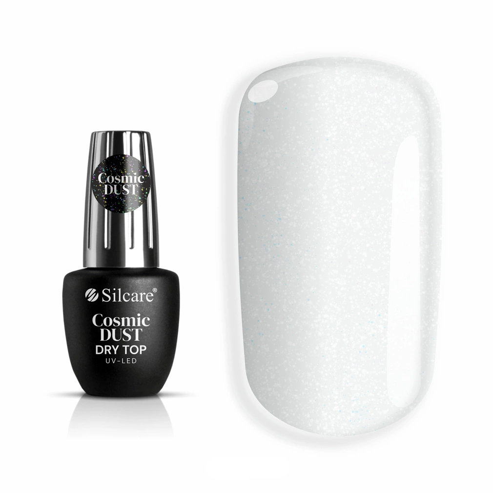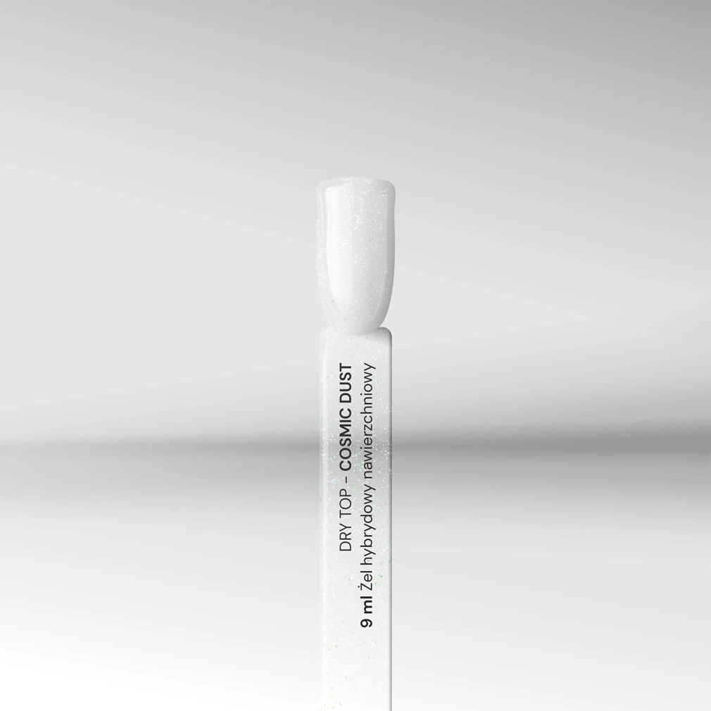 Czy jesteś gotowa, aby przenieść swój manicure na wyższy poziom? Poznaj nasz Dry top hybrydowy z drobinkami Cosmic Dust - rewolucyjny produkt dla każdego, kto kocha nail art! Ten unikalny top coat został zaprojektowany, aby zapewnić niesamowity efekt z migoczącymi drobinkami, które błyszczą jak gwiazdy na Twoim ulubionym lakierze hybrydowym. Stwórz oszałamiający wygląd paznokci w stylu cosmic nails w mgnieniu oka - to idealny sposób, aby dodać odrobinę magii do swojego manicure!