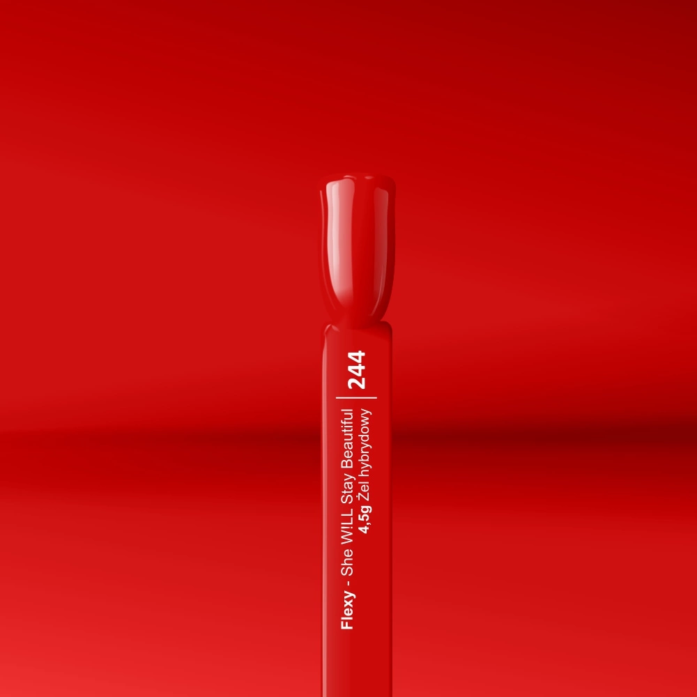 Ten kolor to kwintesencja kobiecości - łączy w sobie elegancję, odwagę i zmysłowość. Lakier hybrydowy Flexy 244 Red Velvet to nasycona, błyszcząca czerwień o głębokim, aksamitnym odcieniu, która nigdy nie wychodzi z mody. Idealny dla kobiet, które lubią wyróżniać się klasą i podkreślać swoją osobowość. Red Velvet sprawdzi się zarówno podczas wielkich wyjść, jak i w codziennym manicure hybrydowym. Ten kolor paznokci hybrydowych doda pewności siebie i przyciągnie spojrzenia jednym ruchem dłoni.