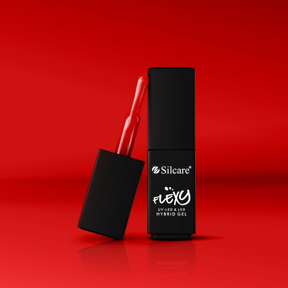 Lakier hybrydowy Flexy Red Velvet jest kompatybilny z lampami LED i UV-LED. Dzięki temu szybko i równomiernie się utwardza, tworząc twardą, gładką warstwę koloru.