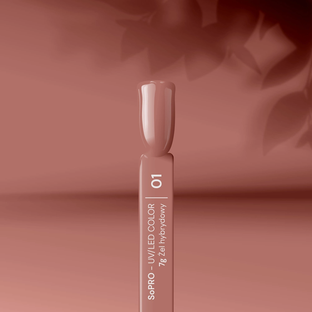 SoPRO UV/LED Color Hybrid Gel to profesjonalny lakier hybrydowy o innowacyjnym składzie i właściwościach. Rewolucyjna hipoalergiczna formuła bez HEMA pozwala na bezpieczne wykonanie manicure nawet osobom wrażliwym na ten składnik. Produkt zapewnia doskonałe krycie już przy 1-2 warstwach. Lakier został wyposażony w półokrągły pędzelek, który pozwala na precyzyjne pokrycie całej płytki i dotarcie produktem aż pod same skórki.