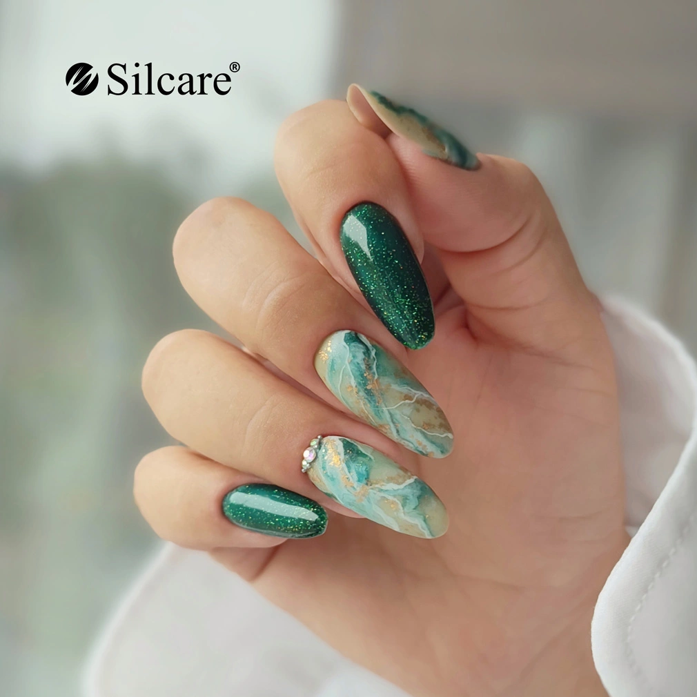 - Nr *072 to butelkowa zieleń z drobinkami brokatu