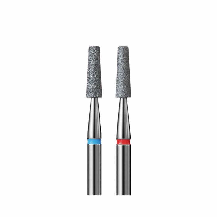 Natomiast frez diamentowy 172.524.025, wyposażony w standardowy nasyp, cechuje się lekkością i zapewnia wysoką jakość pracy. Jego kształt w formie ściętego stożka i niebieski pasek (gradacja około 180) idealnie nadaje się do odsuwania skórek oraz usuwania nabłonka.