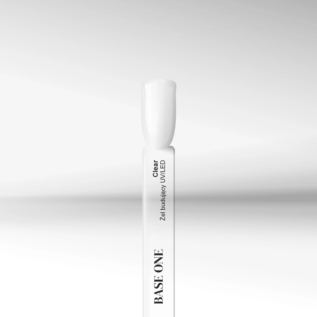 Base One Clear to przezroczysty podstawowy żel budujący UV , o właściwościach samopoziomujących, ma doskonałą przyczepność. Gęsta konsystencja zapewnia wygodną aplikację zarówno dla profesjonalistek jaki i stylistek rozpoczynających swoją przygodę ze stylizacją paznokci.