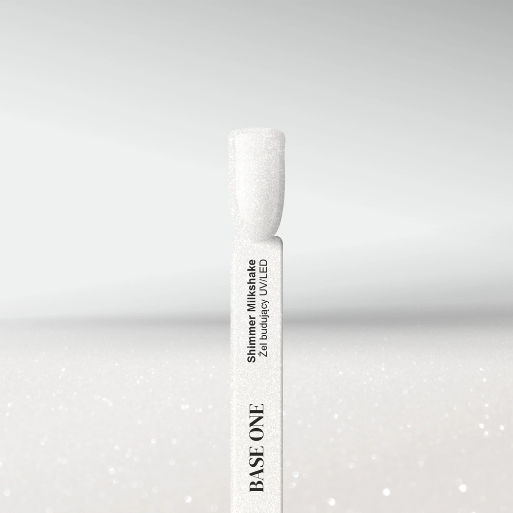 Base One Shimmer Milkshake to żel UV o subtelnym kolorze kremowej bieli z eleganckimi drobinkami. Nadaje naturalny, elegancki wygląd dla dłoni i paznokci, średnia gęstość produktu zapewnia komfort i szybkość aplikacji dla profesjonalistek, stylistek rozpoczynających swoją przygodę, jak i osób początkujących.